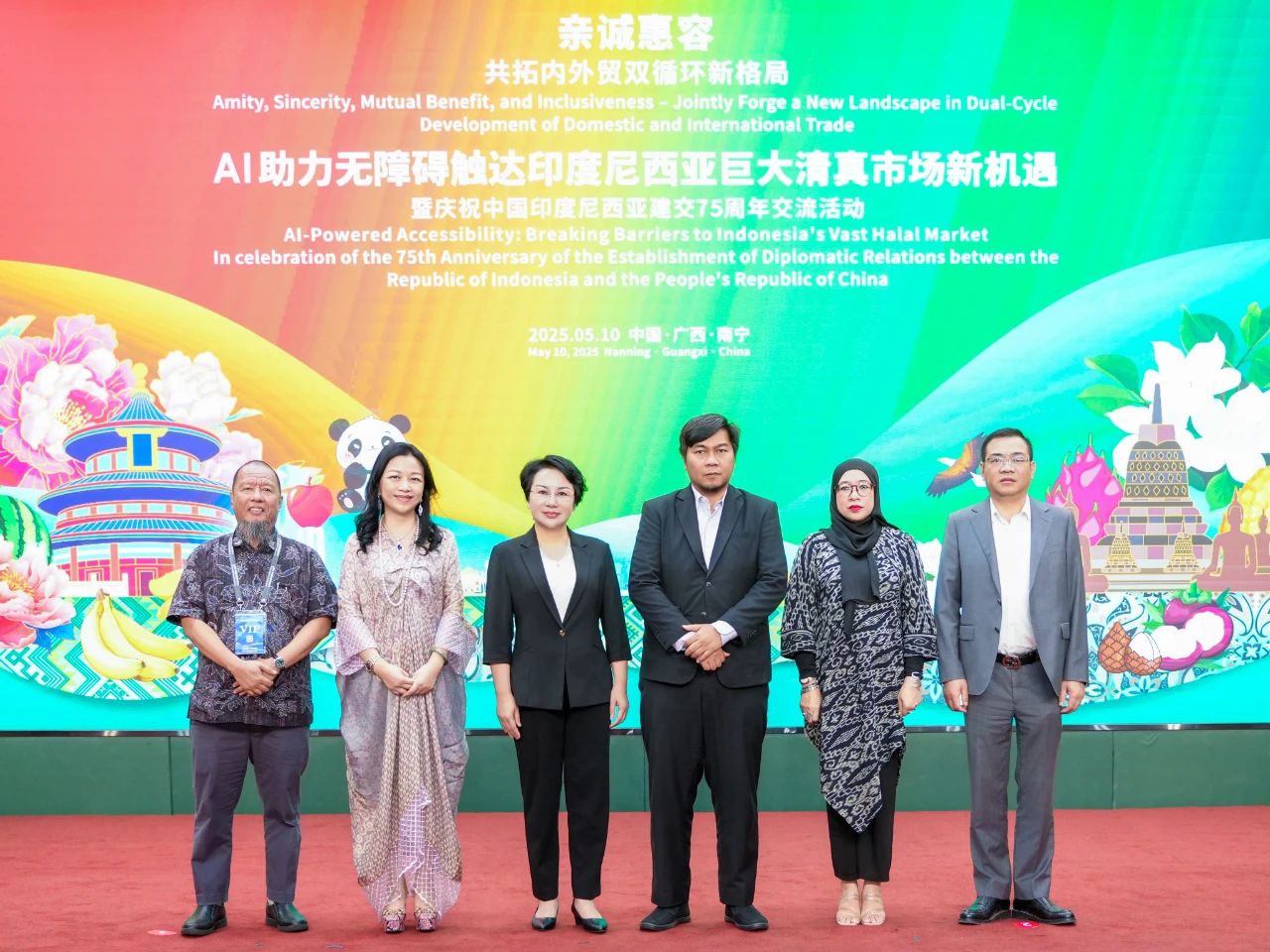 邕江潮涌,梭羅風至——五月商機正當時,2025年5月10日,“親誠惠容·共拓內外貿雙循環(huán)新格局——AI助力無障礙觸達印度尼西亞巨大清真市場新機遇暨慶祝中國印度尼西亞建交75周年交流活動”在中國—東盟特色商品匯聚中心(簡稱“匯聚中心”)隆重舉行。此次活動由廣西壯族自治區(qū)商務廳、中國—東盟特色商品匯聚中心主辦,印度尼西亞共和國駐廣州總領事館、中國—東盟博覽會秘書處、廣西壯族自治區(qū)歸國華僑聯(lián)合會協(xié)辦。