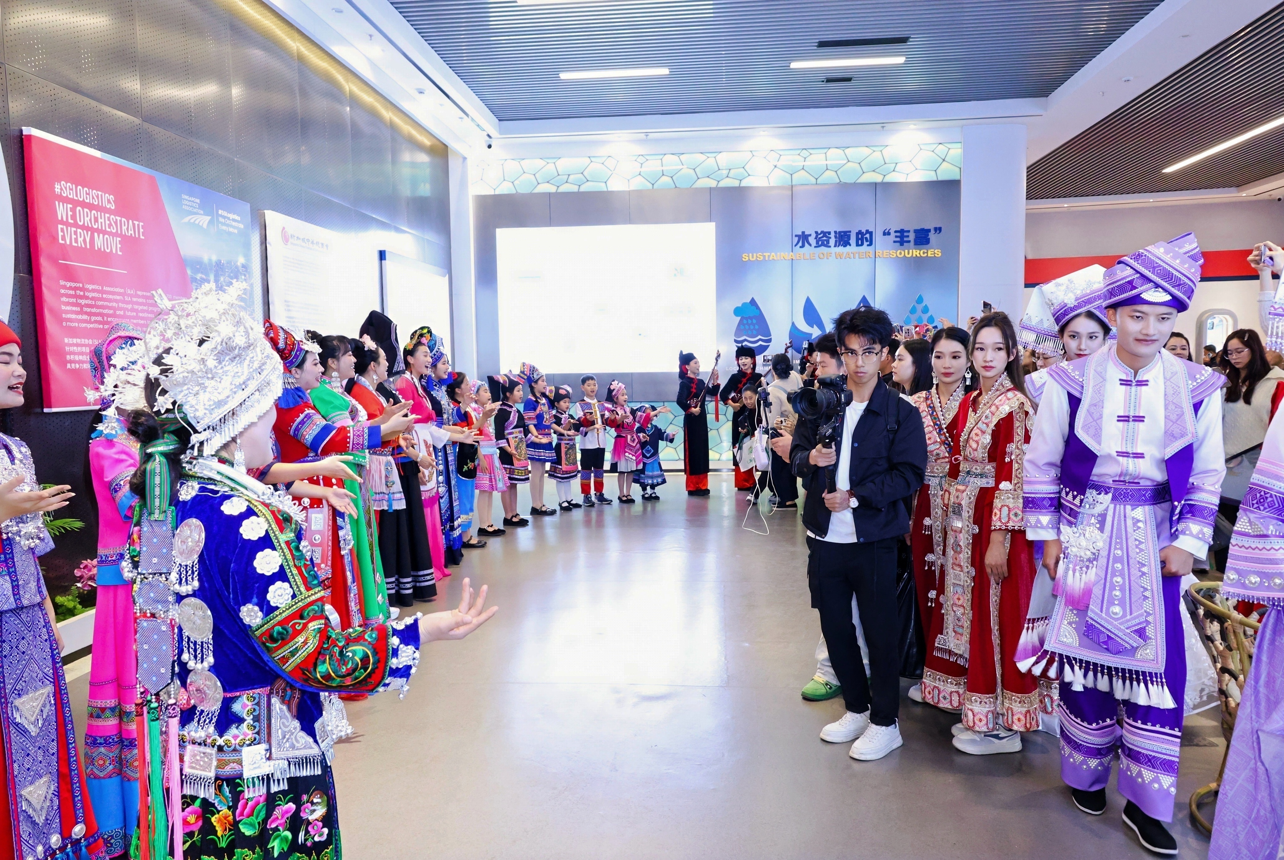 活動(dòng)中,沉浸式參觀匯聚中心各文化主題展館的環(huán)節(jié)成為亮點(diǎn)。演員們身著代表新加坡及廣西各式民族服飾,在新加坡展館輪番演繹經(jīng)典片段。婉轉(zhuǎn)的唱腔、細(xì)膩的表演,與展館中融貫的文化元素交相輝映,不僅營造出一場(chǎng)視聽交融的盛宴,更生動(dòng)詮釋了匯聚中心“以文化匯商家,以商貿(mào)聚合作”的理念?,F(xiàn)場(chǎng)嘉賓或駐足聆聽,或交流感悟,或舉起手機(jī)記錄動(dòng)人瞬間,在多元文化的交融中,近距離感受商貿(mào)往來與文化交融共生的獨(dú)特魅力。