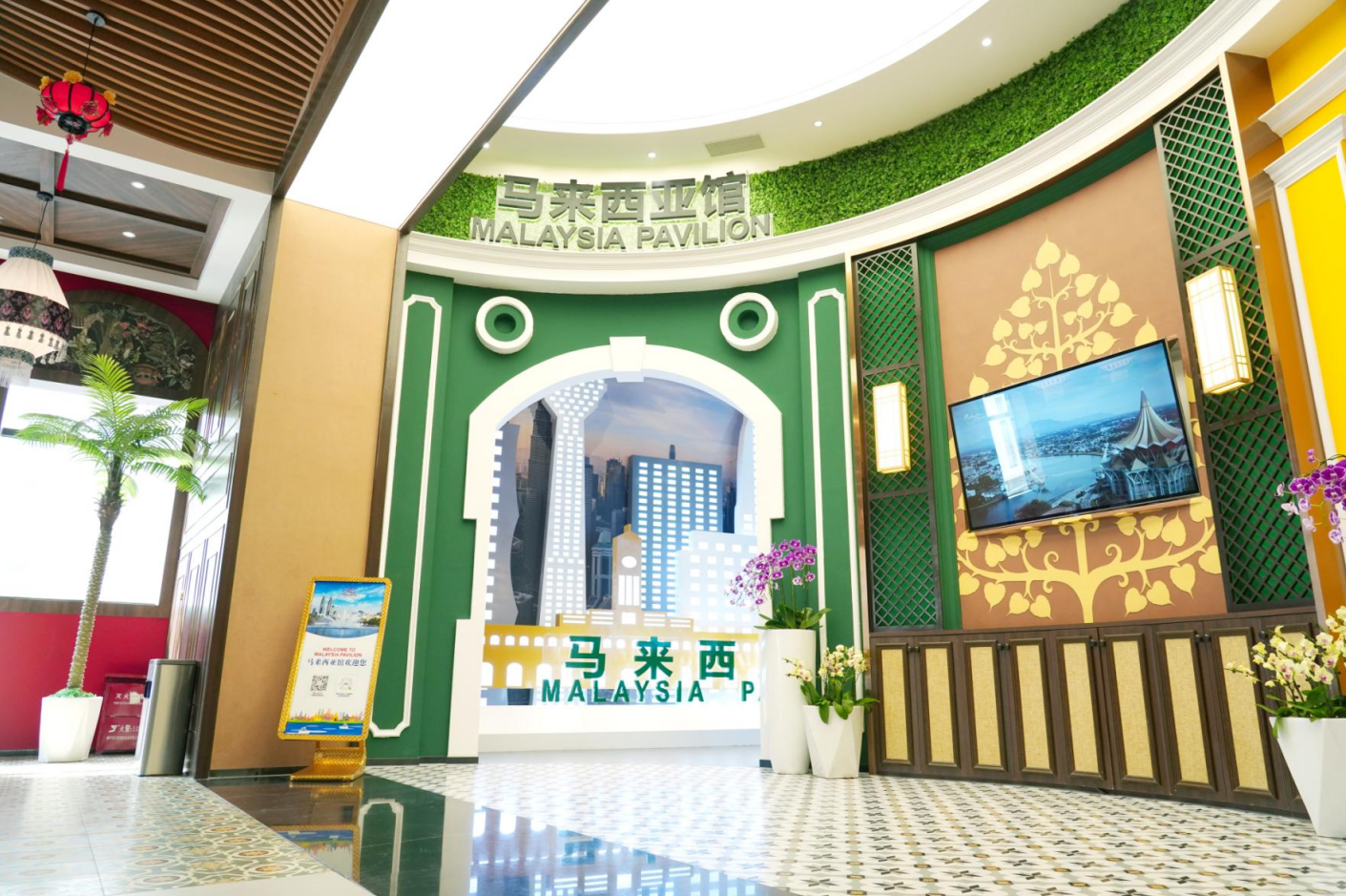 匯聚中心精心打造了18個獨具特色的主題館。其中,馬來西亞主題館巧妙融入雙子塔、五大經(jīng)濟走廊、榴蓮樹、巴迪布等經(jīng)典元素。到訪嘉賓徜徉其間,既能沉浸式感受特色建筑元素與商品傳遞的濃郁文化魅力,又能通過線上平臺便捷選購特色商品,盡享“線下體驗+線上下單”的一站式商貿(mào)新體驗!