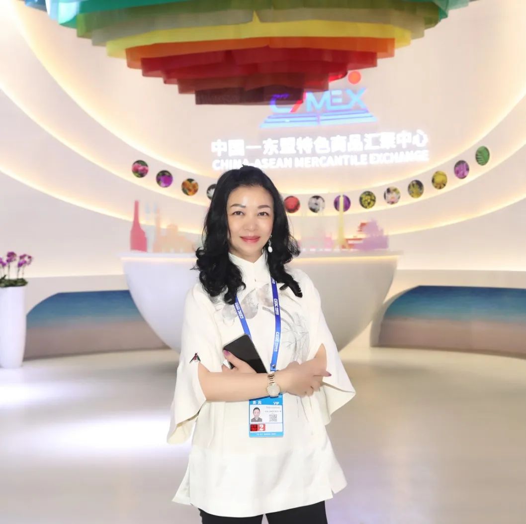 趙海燕在中國—東盟特色商品匯聚中心留影