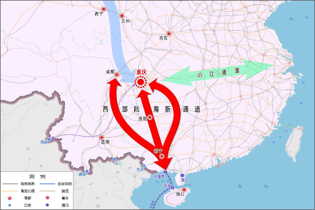 西部陸海新通道地圖示意圖(全國)