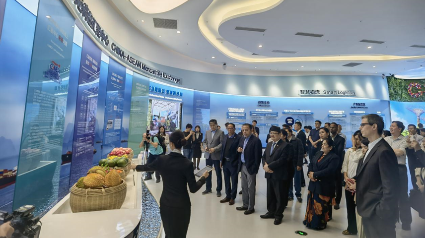 使節(jié)團(tuán)在中新物流園展示中心參觀考察