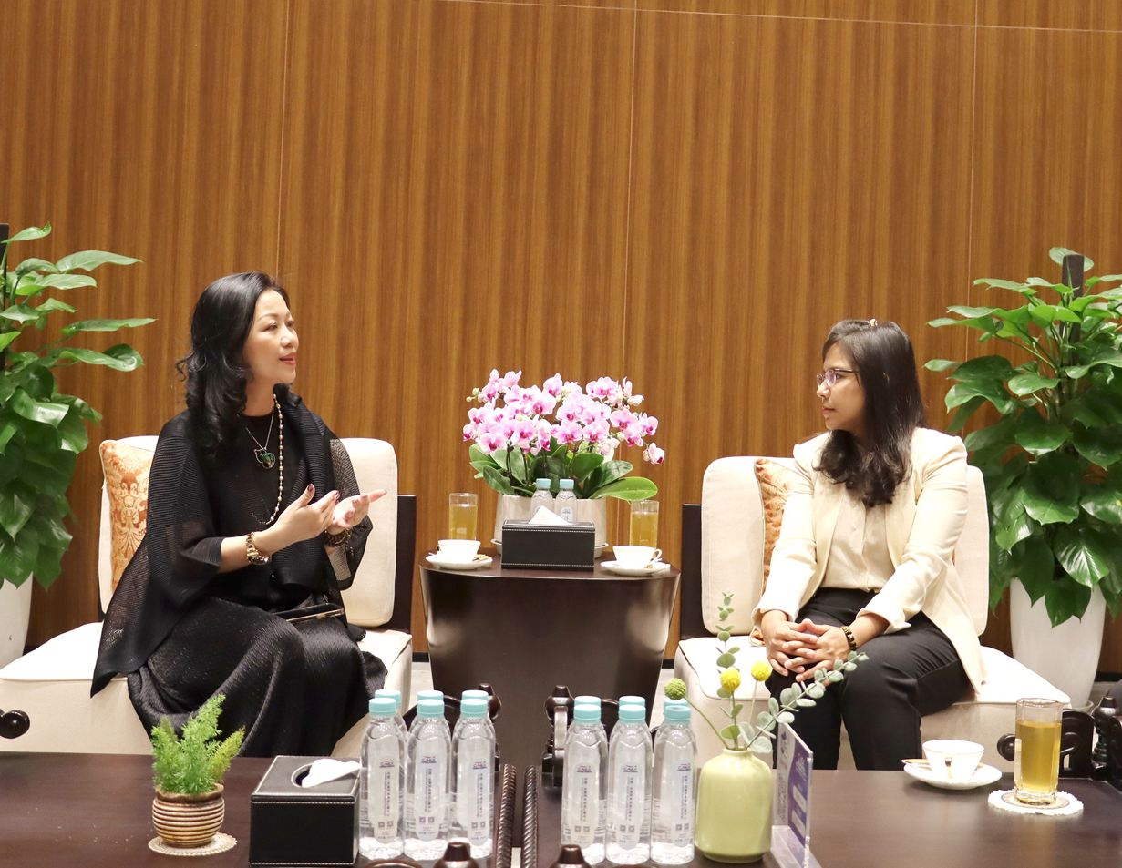 趙海燕董事長與高凱玨參贊在匯聚中心進行交流探討