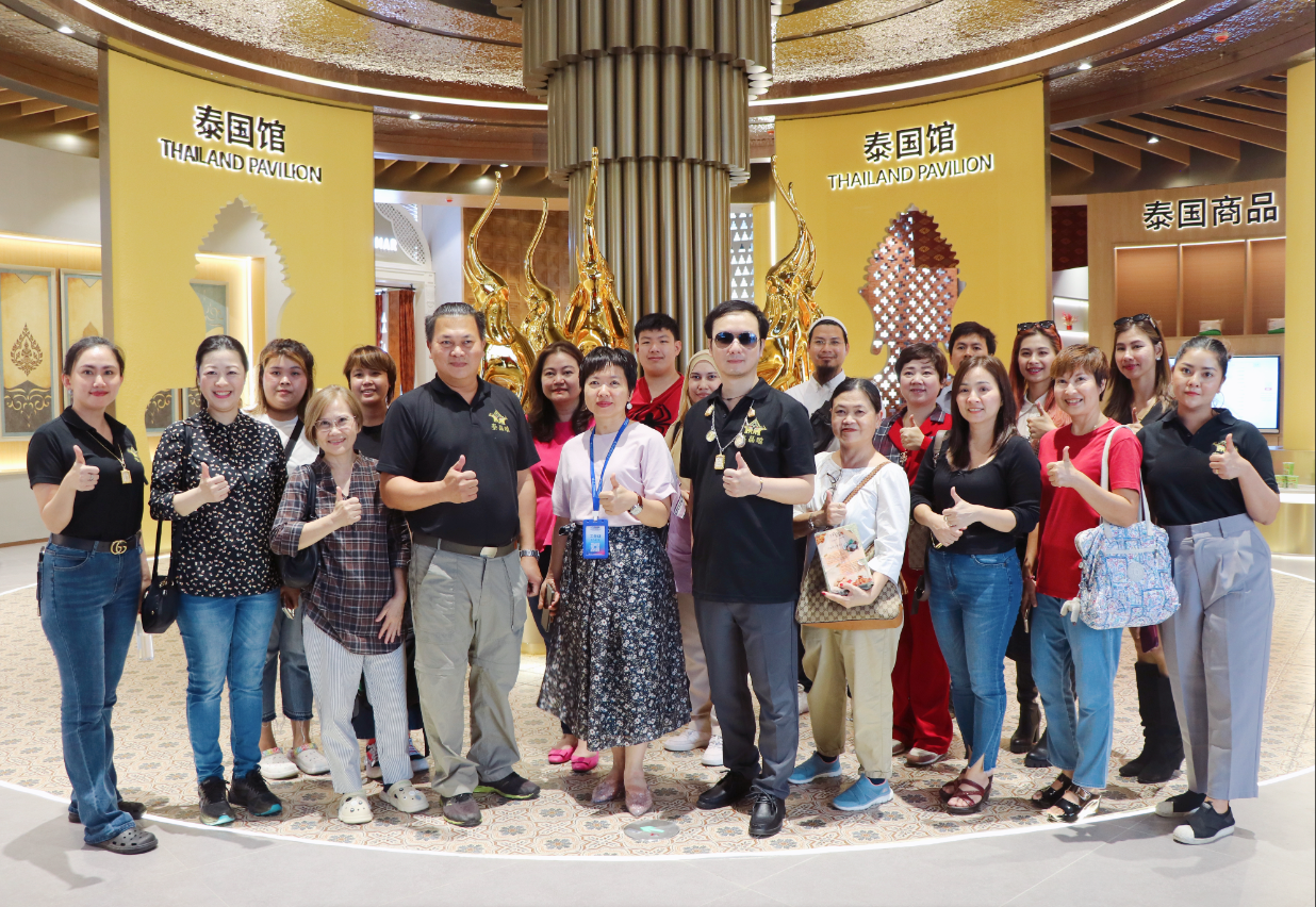 盧春梅副總經(jīng)理表示泰國是世界著名的旅游勝地,商品以種類豐富、物美價(jià)廉等特點(diǎn)深受中國和東盟國家市場歡迎。匯聚中心泰國館通過將泰國經(jīng)典的蓮花、佛像、大象等元素巧妙融合到展館設(shè)計(jì)之中,給客商身臨其境之感,自開館以來就因濃郁的泰國傳統(tǒng)文化和豐富的商品成為匯聚中心最受歡迎的展館之一。這次近距離接觸,泰國企業(yè)代表團(tuán)推銷產(chǎn)品的熱忱令人感動(dòng)。她非??春锰﹪闹辈ナ袌?,匯聚中心愿與泰國企業(yè)在電商直播、線下商貿(mào)等領(lǐng)域加強(qiáng)合作交流,助力更多的泰國優(yōu)質(zhì)企業(yè)及機(jī)構(gòu)到匯聚中心落戶,探尋合作商機(jī)、分享發(fā)展機(jī)遇,推動(dòng)中泰雙方的經(jīng)貿(mào)合作再上新臺(tái)階。