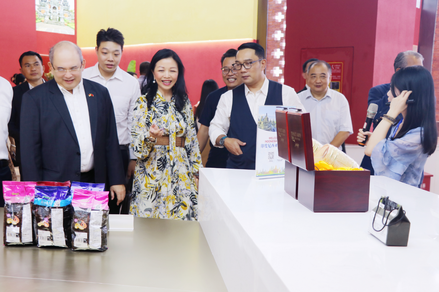 利德萬充分認可匯聚中心在中國與東盟國家經(jīng)貿(mào)往來中扮演的重要角色,同時對于匯聚中心印尼展館充分展示印尼多元文化與特色產(chǎn)品的設(shè)計理念感到非常欣喜,并對此給予了九分的高度評價。利德萬表示這是第一次到訪匯聚中心,他非常認同匯聚中心搭建的線上線下經(jīng)貿(mào)往來一站式平臺,在考察時就立刻想到將西爪哇省非常有名的咖啡豆入駐匯聚中心,并以此作為切入點,與匯聚中心進行更多合作,未來也希望借助匯聚中心平臺幫助更多印尼的商家和特色產(chǎn)品進入中國市場。他強調(diào),印尼和中國是志同道合的同路人、好伙伴,西爪哇省愿用好區(qū)域全面經(jīng)濟伙伴關(guān)系協(xié)定實施等重大機遇,進一步加強同廣西同匯聚中心商貿(mào)等領(lǐng)域的務(wù)實合作。