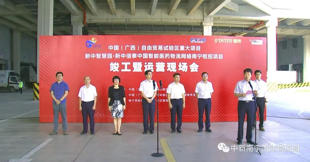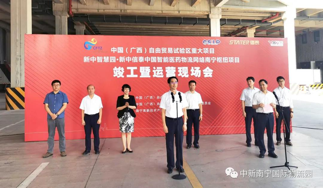 8月28日上午,中新南寧國際物流園新中信泰中國智能醫(yī)藥物流網(wǎng)絡(luò)南寧樞紐項(xiàng)目和新中智慧園竣工暨運(yùn)營現(xiàn)場會(huì)在南寧順利舉行。自治區(qū)人大常委會(huì)副主任、黨組副書記,廣西自貿(mào)試驗(yàn)區(qū)建設(shè)指揮部指揮長張曉欽出席現(xiàn)場會(huì),并宣布項(xiàng)目竣工暨運(yùn)營。自治區(qū)商務(wù)廳、南寧市政府、南寧五象新區(qū)管委會(huì)、南寧高新區(qū)管委會(huì)、良慶區(qū)政府、南寧市有關(guān)部門、各企業(yè)代表約120人參加現(xiàn)場會(huì)。