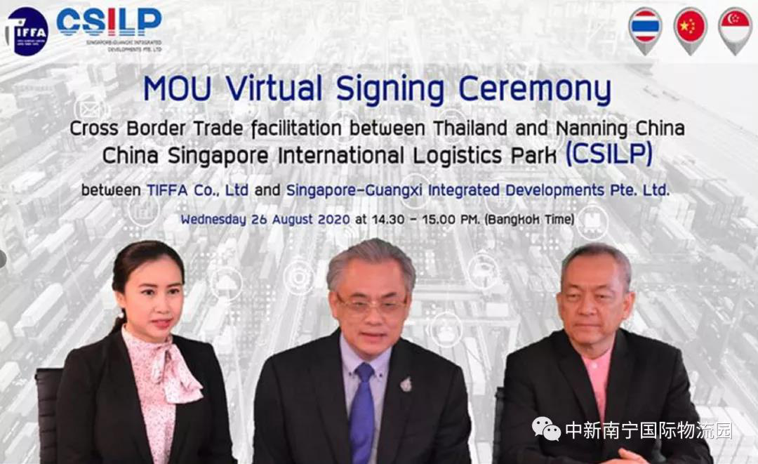 2020年8月26日,廣西新中產(chǎn)業(yè)投資有限公司董事長張松聲與泰國國際貨運(yùn)代理協(xié)會(huì)有限公司(TIFFA Co.,LTD,以下簡稱TIFFA)主席Suwit Ratanachinda正式簽訂雙方合作諒解備忘錄(MOU),因疫情影響簽訂儀式以線上云簽約的方式進(jìn)行。