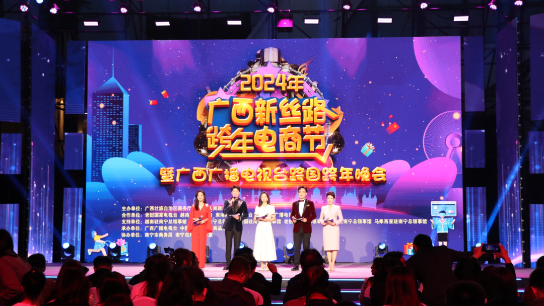 網(wǎng)羅八桂優(yōu)品、東盟好物,共赴e場消費(fèi)盛宴。由廣西壯族自治區(qū)商務(wù)廳聯(lián)合南寧市人民政府,聯(lián)動(dòng)越南、柬埔寨、泰國、老撾、緬甸、馬來西亞駐南寧總領(lǐng)事館共同舉辦的2024年廣西新絲路跨年電商節(jié)暨廣西廣播電視臺(tái)跨國跨年晚會(huì)在國內(nèi)主會(huì)場廣西南寧市中國—東盟特色商品匯聚中心(以下簡稱“匯聚中心”)、海外分會(huì)場老撾萬象國家文化宮同步精彩啟幕。
