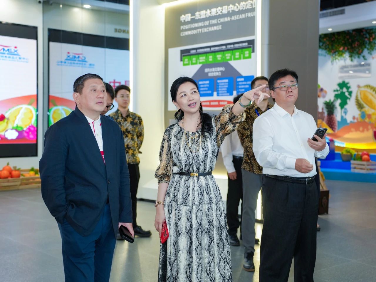 考察組還走進(jìn)水果交易中心展廳,就中國與東盟水果貿(mào)易情況進(jìn)行了溝通交流。陳海泉大使表示,此次到訪認(rèn)識(shí)到了中國南北方水果的差異,也了解了廣西作為中國水果第一大省區(qū)的獨(dú)特優(yōu)勢(shì),在廣西建設(shè)水果交易中心大有可為。新加坡雖不是水果主要生產(chǎn)國,但依托世界重要的轉(zhuǎn)口港基礎(chǔ)設(shè)施及先進(jìn)的冷鏈物流體系,可在水果精深加工、先進(jìn)保鮮技術(shù)等方面進(jìn)行深化協(xié)作,希望借助水果交易中心,高效銜接中國與東盟水果產(chǎn)業(yè)鏈資源,助推更多優(yōu)質(zhì)果品通過新加坡更好地走向國際,共享全球廣闊市場。