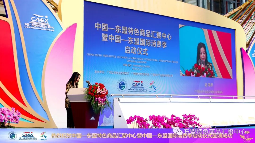 趙海燕女士在致辭中對(duì)與會(huì)嘉賓表示誠(chéng)摯地歡迎,并向一直以來(lái)給予匯聚中心大力支持的政商各界人士表示由衷地感謝。她指出,匯聚中心作為中國(guó)與東盟合作的后起之秀,將充分利用廣西地理區(qū)位優(yōu)勢(shì)和自身資源,打造一個(gè)中國(guó)與東盟線上線下經(jīng)貿(mào)往來(lái)的首選平臺(tái)!通過(guò)線上數(shù)字化平臺(tái)+線下沉浸式體驗(yàn)的相結(jié)合的方式,使更多商家形成“購(gòu)買東盟特色商品,就到廣西到匯聚中心”,力爭(zhēng)將匯聚中心打造成為外國(guó)商家進(jìn)入中國(guó)市場(chǎng)的首站,以及中國(guó)商家拓展海外市場(chǎng)的窗口!